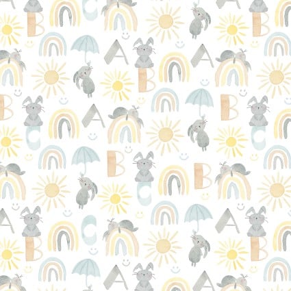 Bunny Love - One-Way Bunnies, White - PER 1/4 YARD