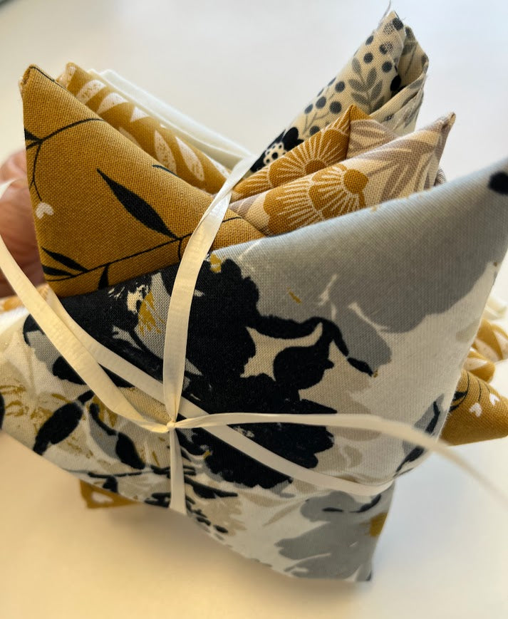 6 curated fat quarters for the Happy Go Lucky MysteryFive-0 Mini Mystery