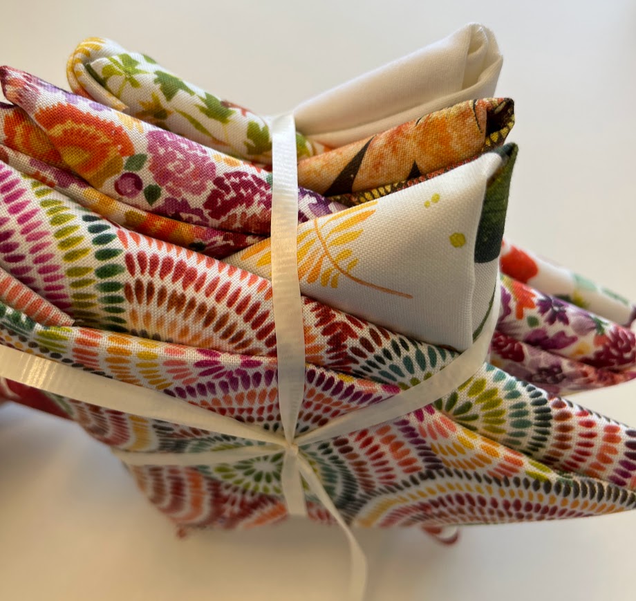 6 curated fat quarters for the Happy Go Lucky MysteryFive-0 Mini Mystery
