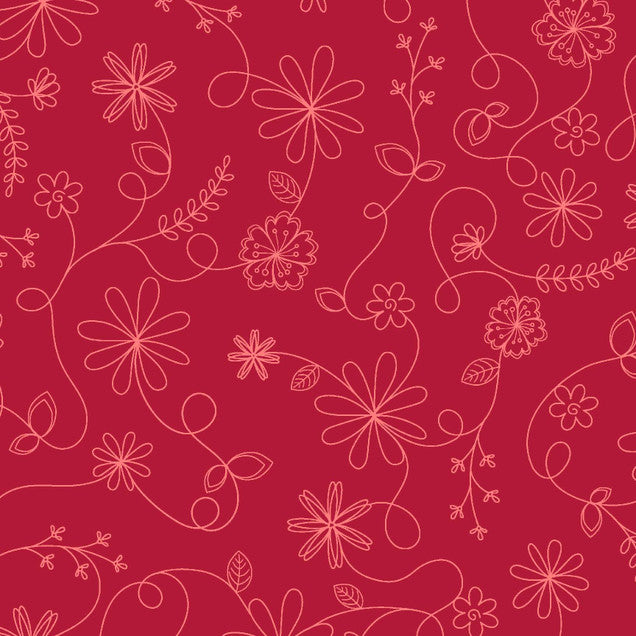 Kimberbell Basics - Swirl Floral, Red - PER 1/4 YARD