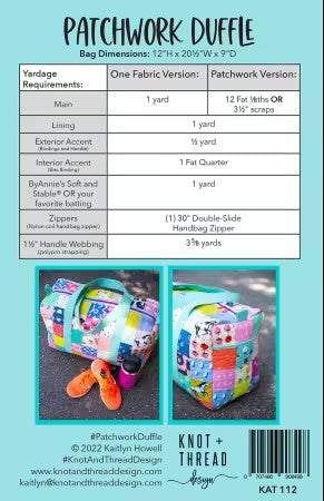 You really can carry it all with this giant duffle bag! Choose between a solid exterior fabric or scrap it up with some patchwork. There are two exterior pockets. Fill it up and take it on a trip!