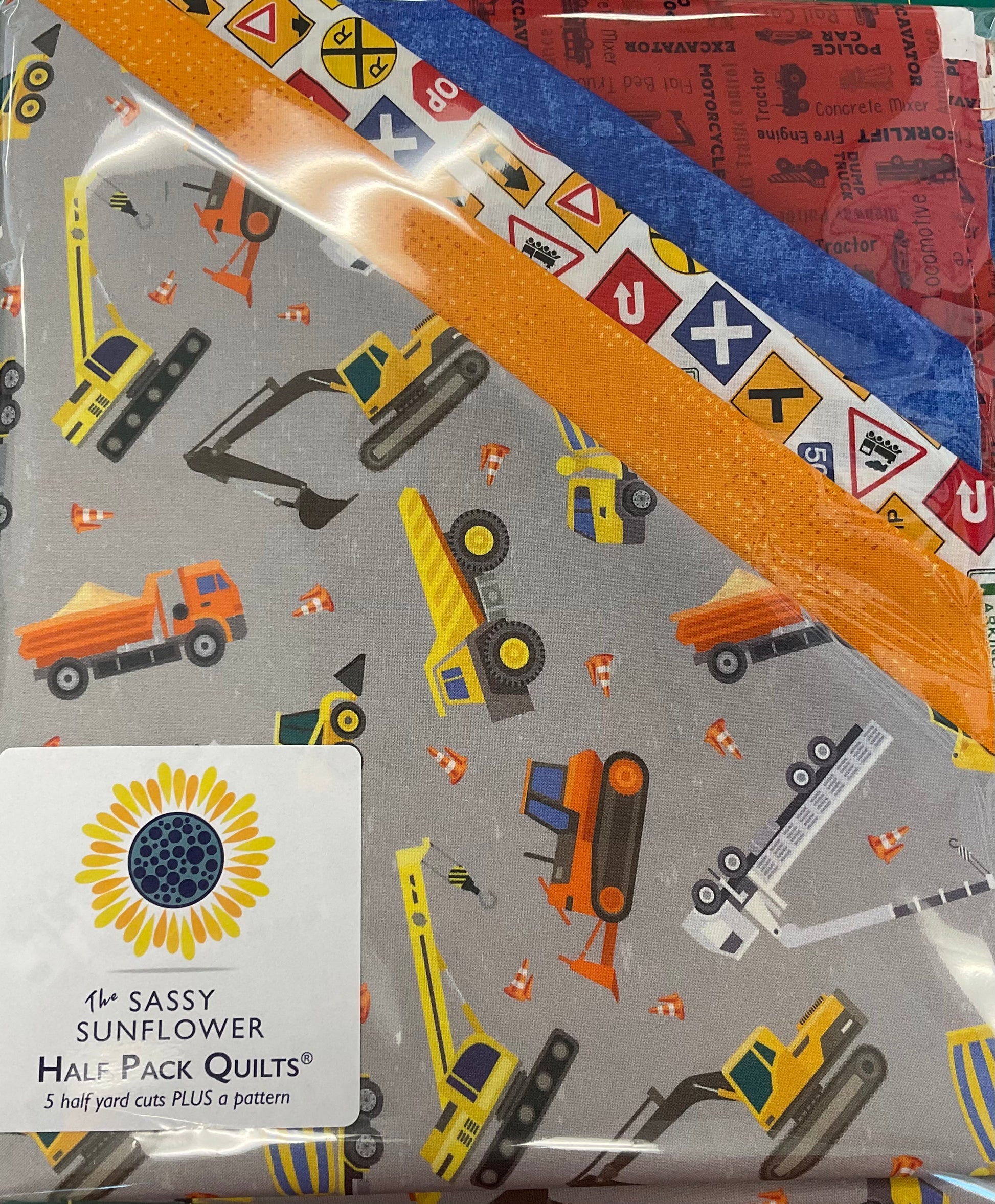 Each Half Pack contains Five Half yard cuts of fabric and is enough to make an entire quilt top, or Tippy Tote! Your choice of one original Sassy Sunflower pattern is included with each Half Pack purchase. Note which pattern you would like in the notes section of your shopping cart.