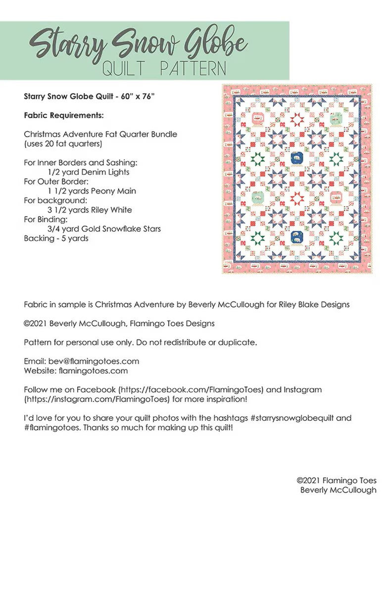 The Starry Snow Globe Quilt by Beverly McCullough of Flamingo Toes features pieced stars and snow globes set in a chain layout. Finished size is 61" x 77".