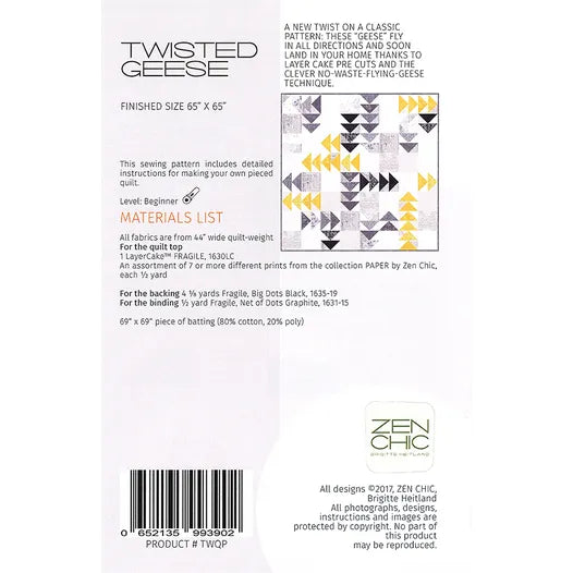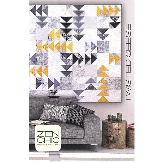 Twisted Geese Quilt Pattern showcases fabulous fowl flying in every direction. Gather a lovely layer cake in Filigree by Zen Chic for Moda Fabrics to bring together this migration masterpiece.